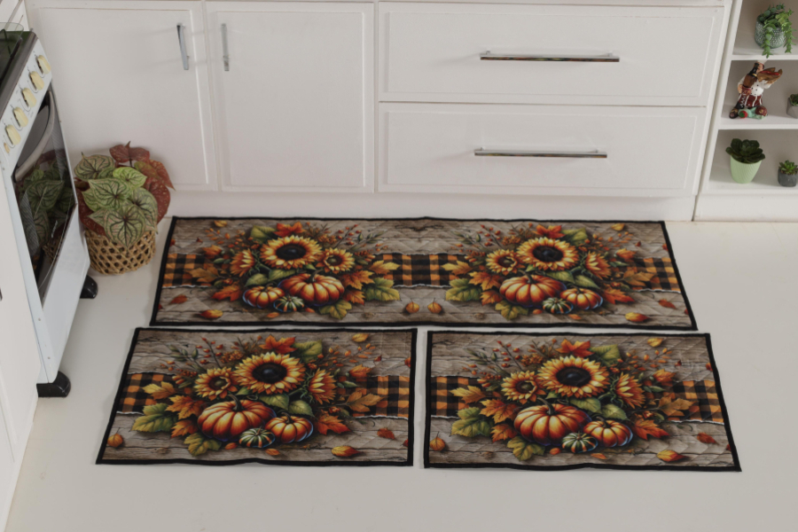 Jogo de Tapete de Cozinha Estampado 3 Peças
