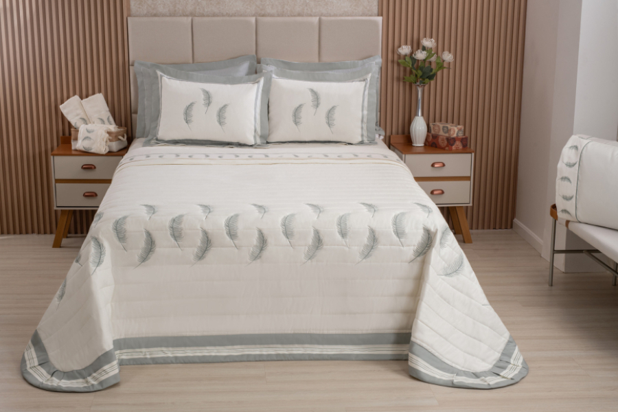 Cobre Leito Bordado – 5 peças: